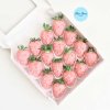 Dárkový box z jahod v belgické bílé a modré čokoládě ve tvaru medvídků.